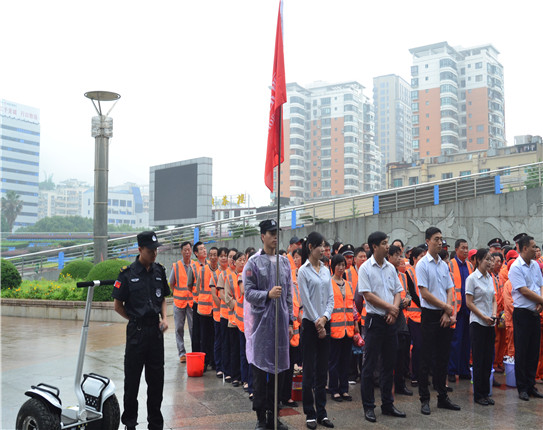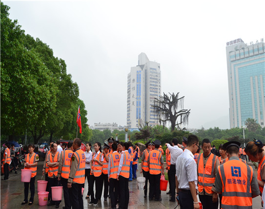 一大早我們麗潔物業的200多員工及領導按照本次活動的流程,陸續在晨沐廣場集結,簽到。