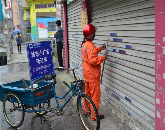 在城市公共區域隨意粘貼的小廣告被人們稱為“牛皮癬”。在樂清市區到處可見的“牛皮癬”嚴重地影響了市容市貌,因此我們麗潔物業公司在5月24日這一天特地開展以“美麗樂清,你我同行”口號清除城市道路“牛皮癬”的公益活動。本次公益活動目的和宗旨只有一個:傳播“攜手共創和諧衛生、文明的人居環境”的人文精神。