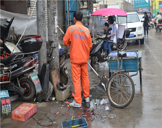 天空飄起了毛毛細雨,但絲毫沒有影響我們要為城市美容”的干勁。
