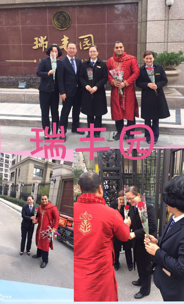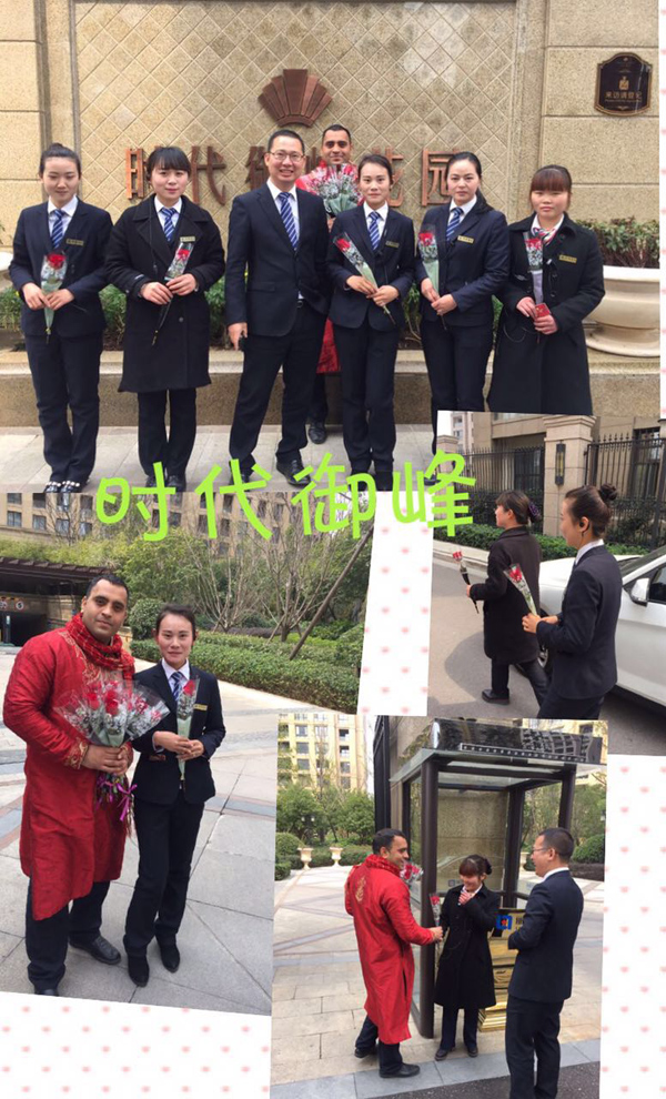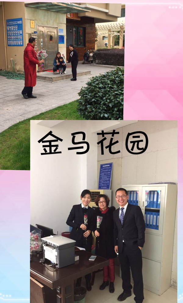 上海花園小區麗潔物業總部:一大早,管家們就站在小區出入口,為每位女業主送上一束玫瑰,獻上我們最真摯的女神節問候!看著她們臉上開心的樣子,我們也非常開心!